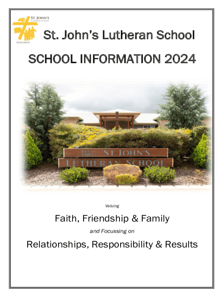 St. Johns Lutheran School INFORMATION 2024ValuingFaith, Friendship & Family