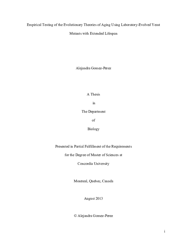 Empirical Testing of the Evolutionary Theories of Aging Using LaboratoryEvolved Yeast Mutants with Extended LifespanAlejandra GomezPerezA Thesis in The Department of BiologyPresented in Partial Fulfillment