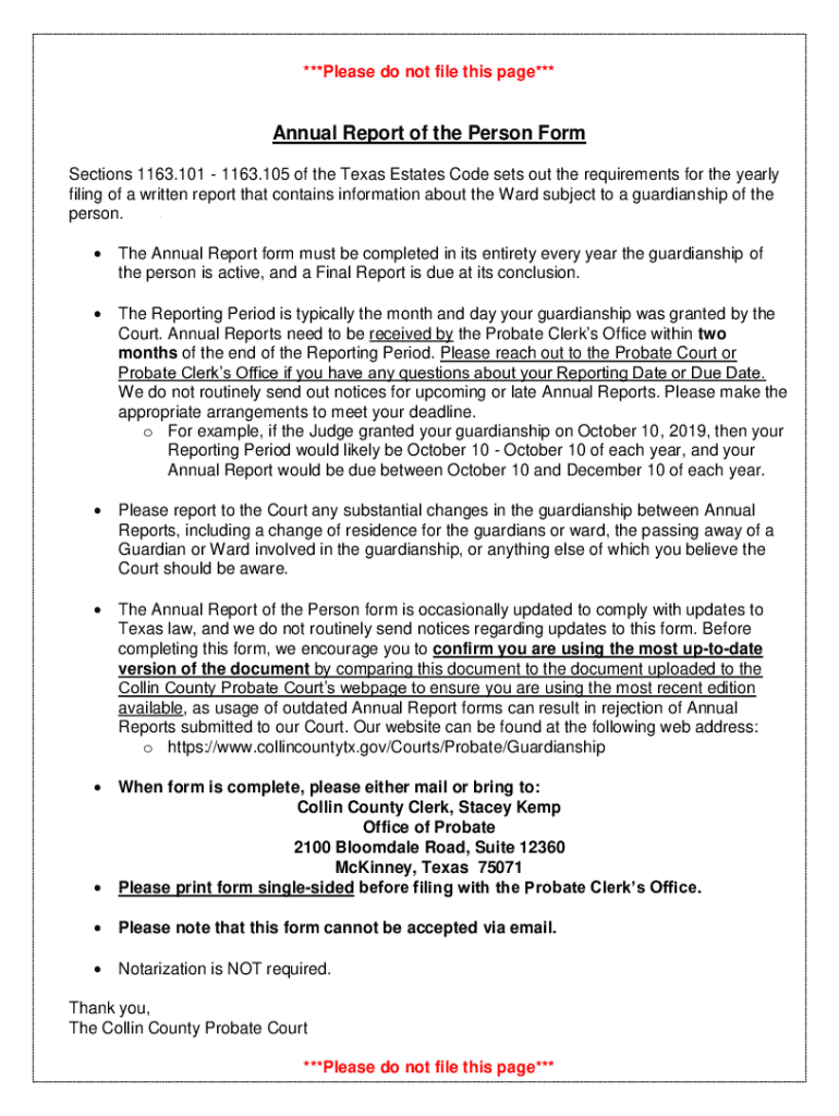 ***Please do not file this page***Annual Report of the Person Form
