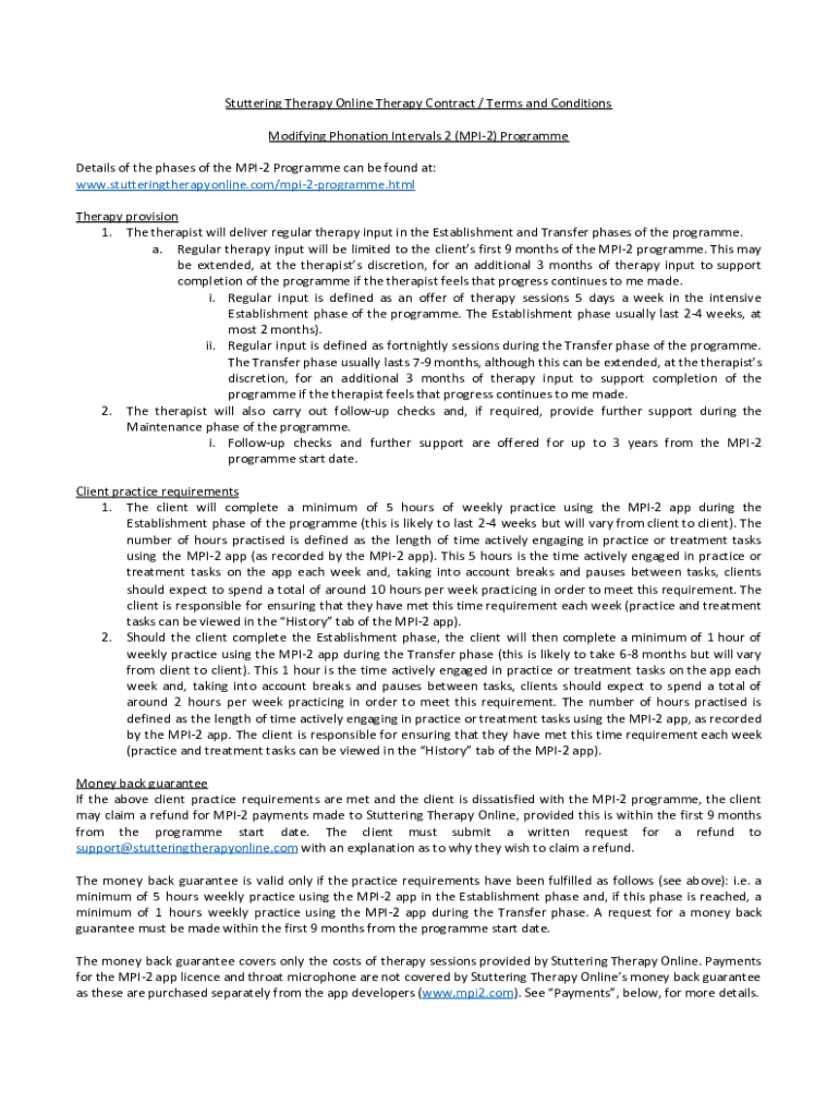 Stuttering Therapy Online Therapy Contract / Terms and Conditions