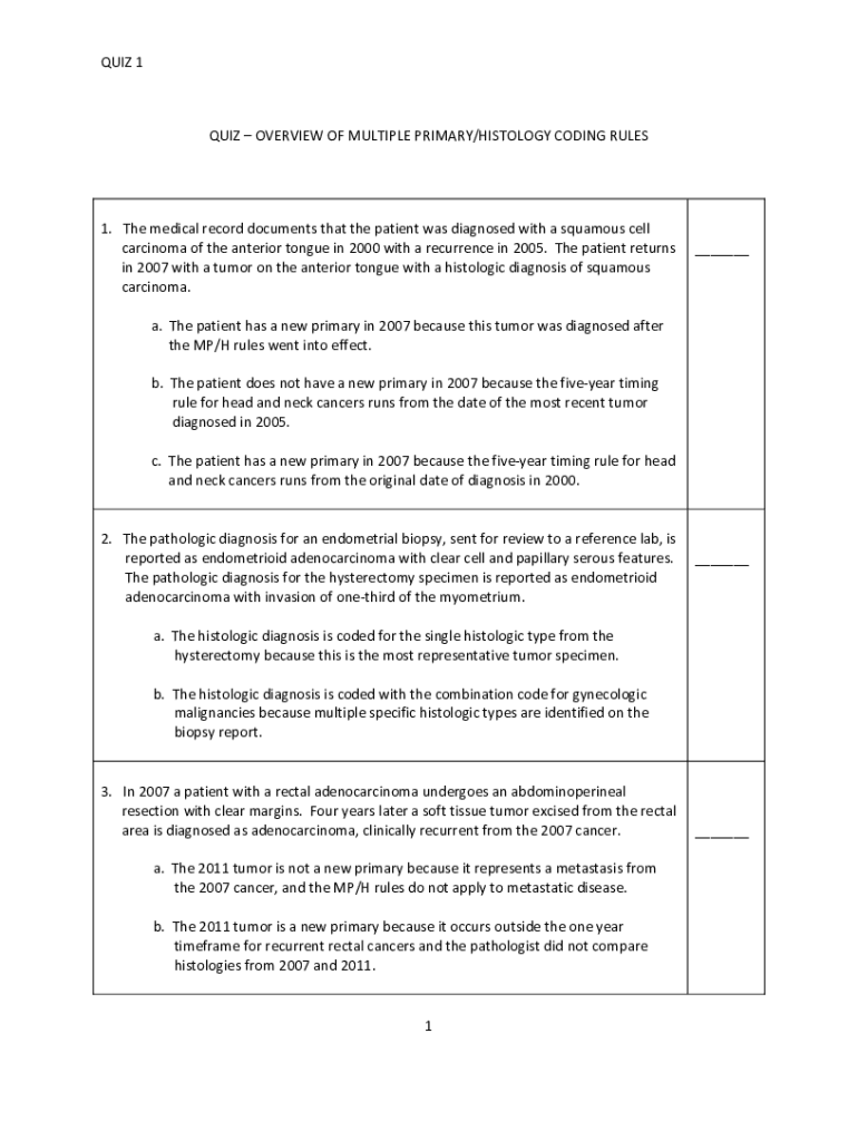 QUIZOVERVIEWOFMULTIPLEPRIMARY/HISTOLOGYCODINGRULES