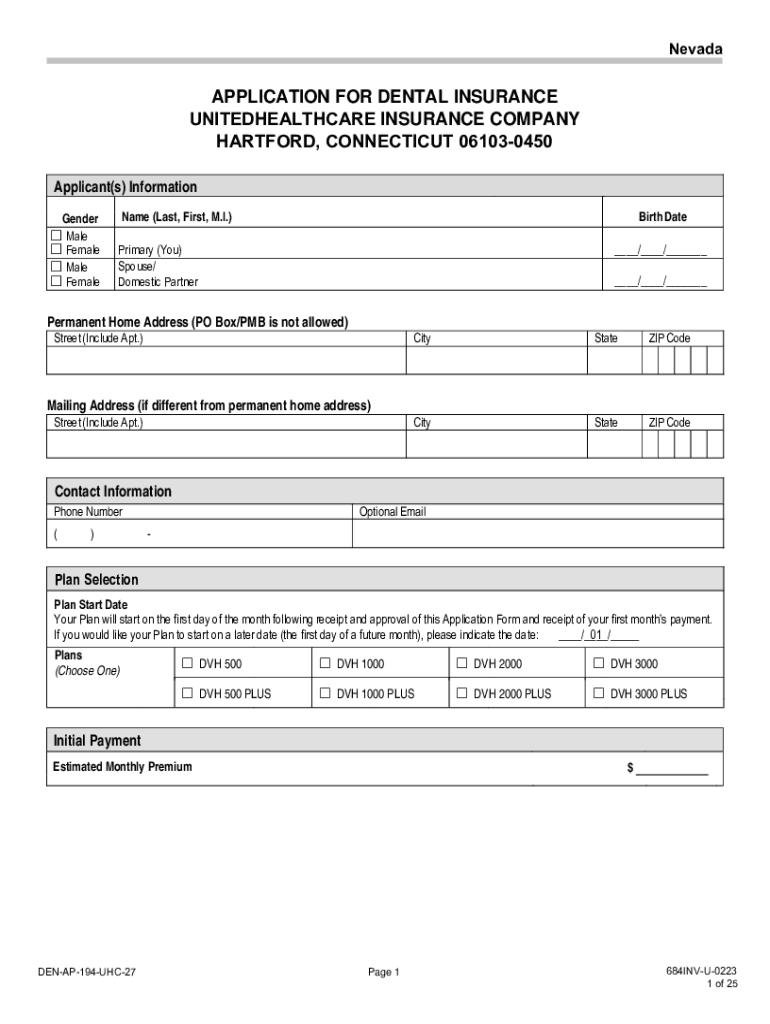 NevadaAPPLICATION FOR DENTAL INSURANCE