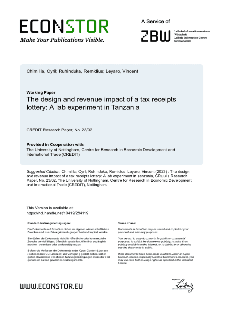 Get the free The design and revenue impact of a tax receipts lottery. Economics