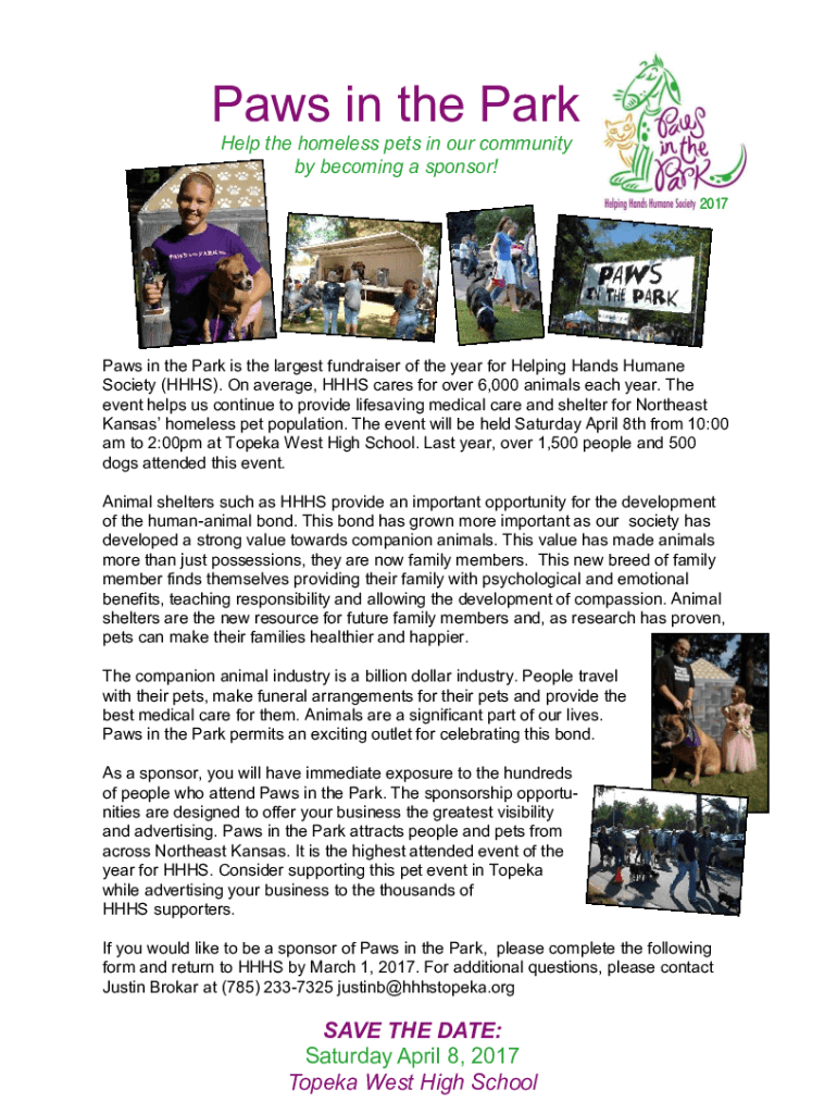 2017Paws in the Park is the largest fundraiser of the year for Helping Hands Humane