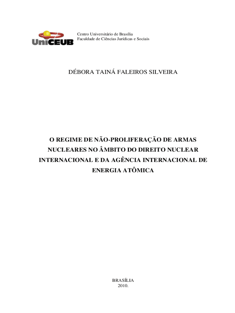 Obtenha o gratuito O regime de no-proliferao de armas nucleares no ... - repositorio uniceub