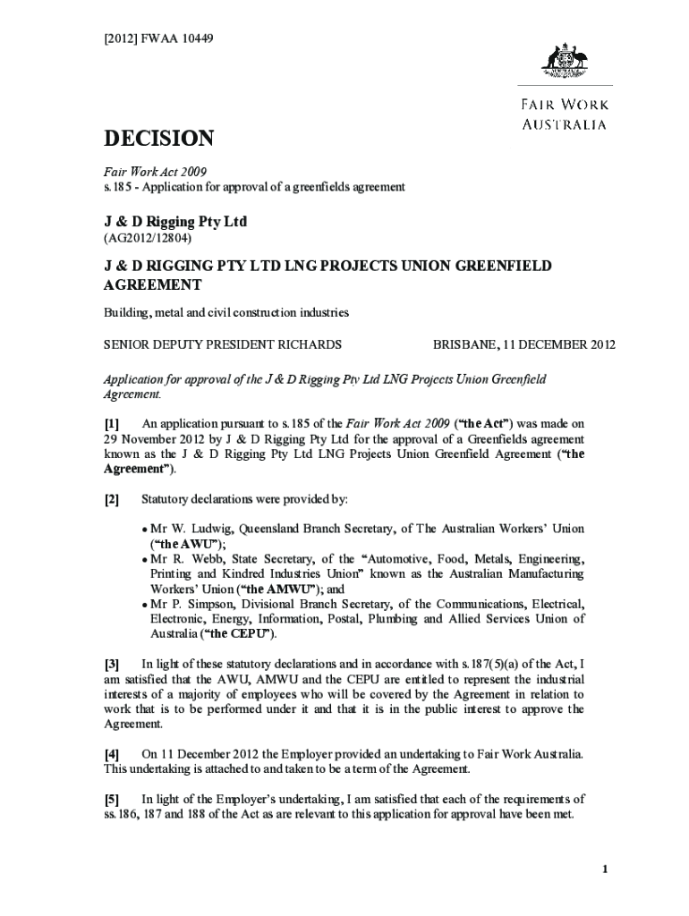 (AG2012/12804)J & D RIGGING PTY LTD LNG PROJECTS UNION GREENFIELD