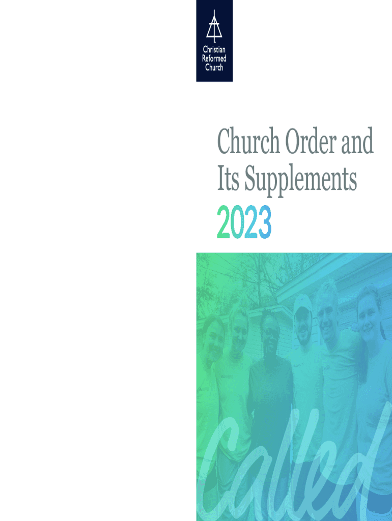 Church Order and Its Supplements1552502023Church Order and Its Supplements2023This booklet is prepared by the Christian Reformed Church in North America (CRCNA) and incorporates revisions to be considered