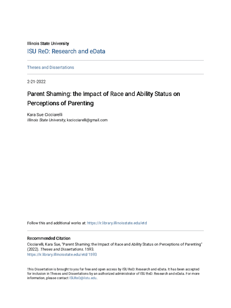 Get the free Parent Shaming: the Impact of Race and Ability Status on ... - ir library illinoisstate
