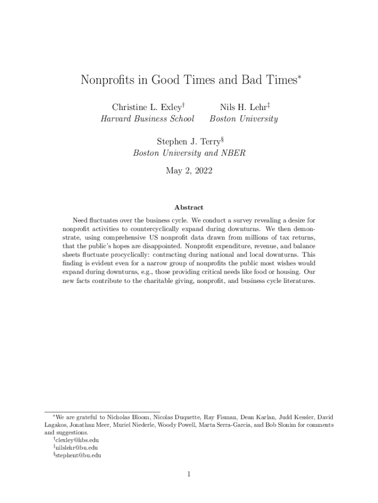Nonprofits in Good Times and Bad Times Christine L. Ella Harvard Business Schoolgirls H. Lear Boston University Stephen J. Terry Boston University and BER May 2, 2022Abstract Need fluctuates over