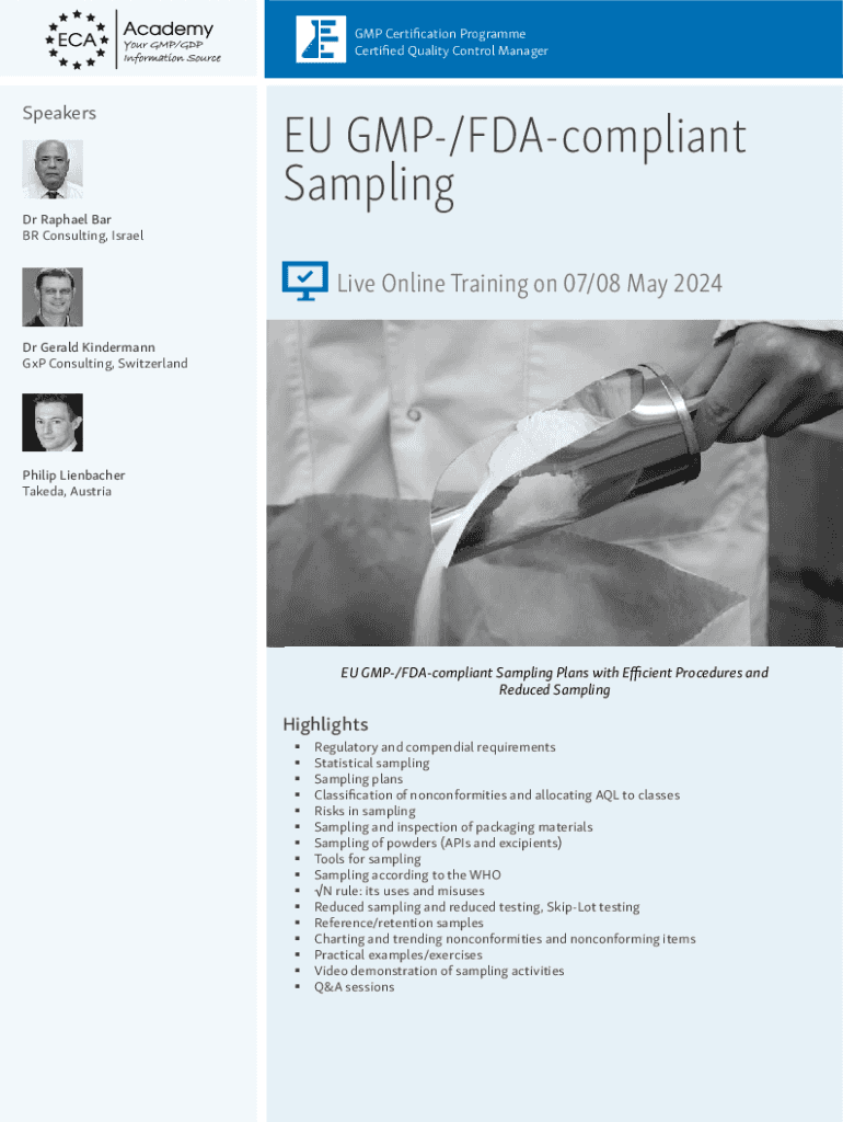 Get the free EU GMP-/FDA-compliant Sampling - Live Online Training