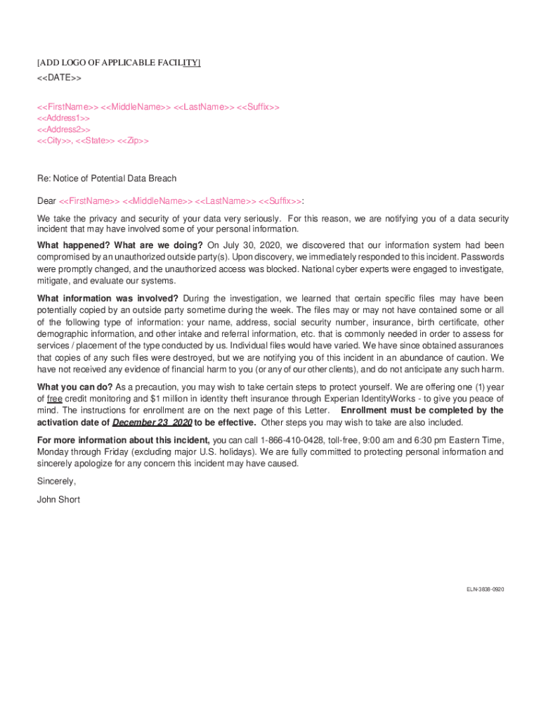 Get the free Notice of Data Breach This letter is to inform you List ... - consumer sc