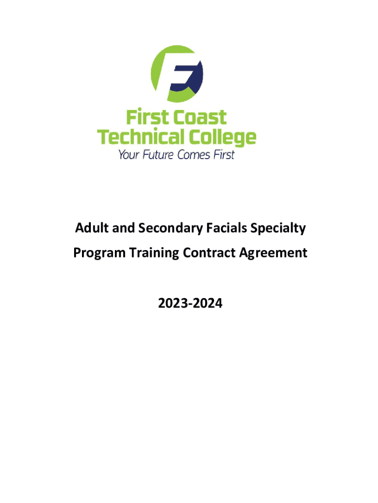 Adult and Secondary Facials Specialty Program Training Contract Agreement 20232024PURPOSE OF CONTRACT The purpose of this contract is to highlight specific program policies and procedures above and