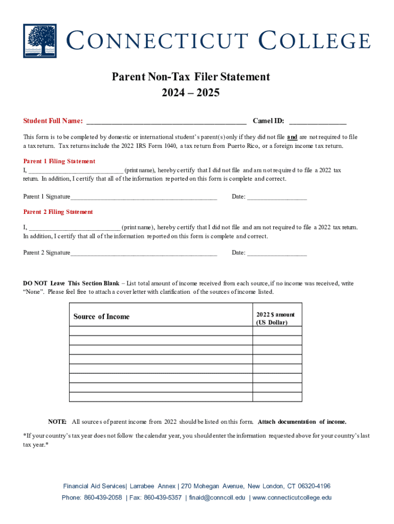 This form is to be completed by domestic or international students parent(s) only if they did not file and are not required