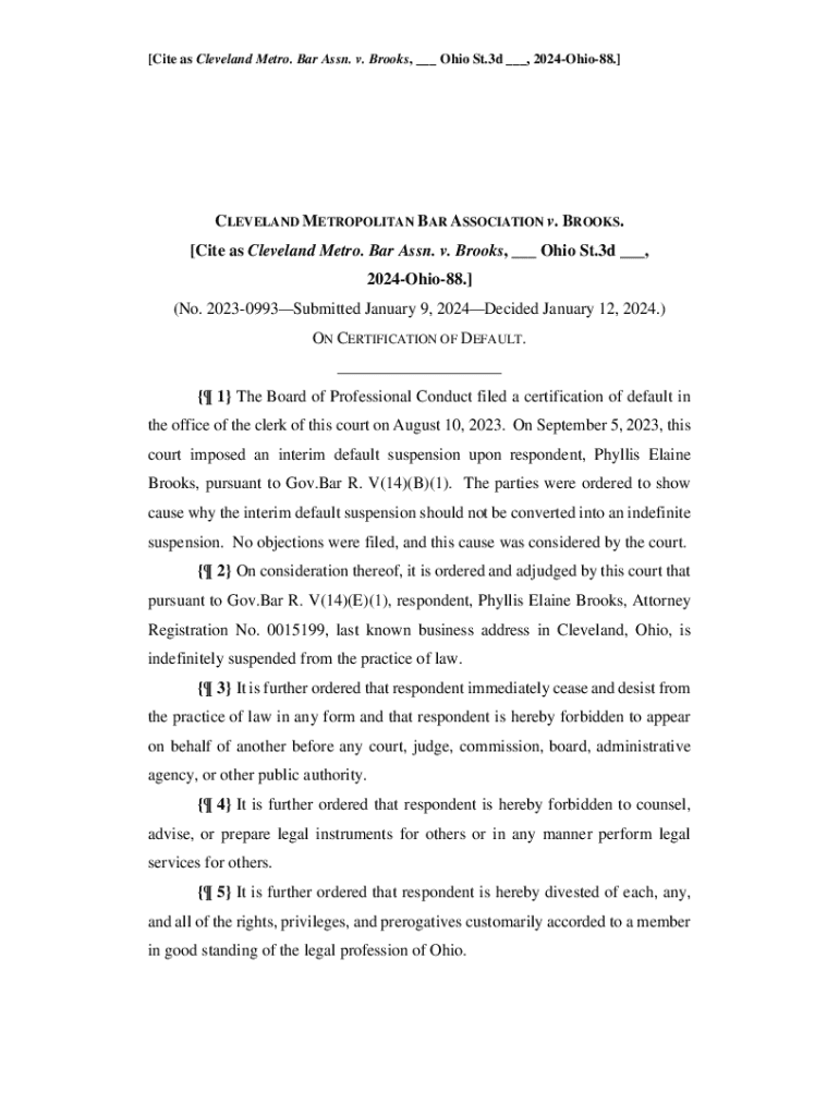 Get the free Cite as Cleveland Metro. Bar Assn. v. Brooks,Ohio St.3d