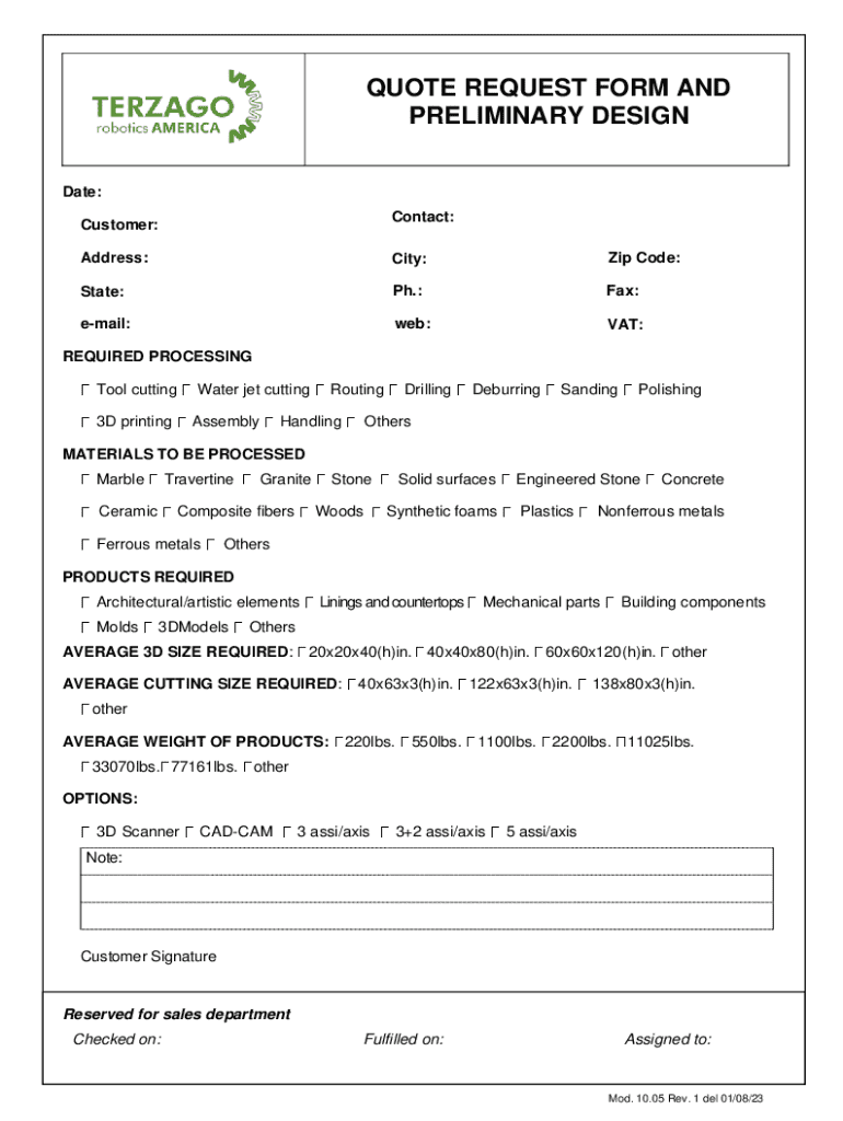 Get the free QUOTE REQUEST FORM AND PRELIMINARY DESIGN - files spazioweb