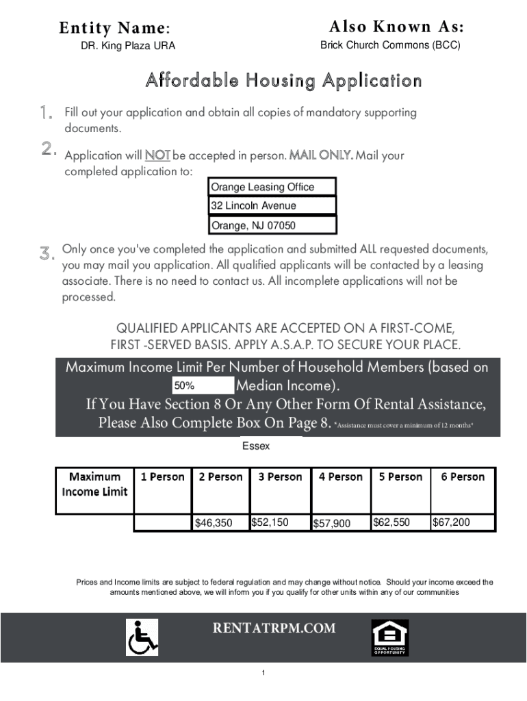 Also Known As:Entity Name:Brick Church Commons (BCC)DR. King Plaza URAAffordable Housing Application 1. 2.Fill out your application and obtain all copies of mandatory supporting documents. Application
