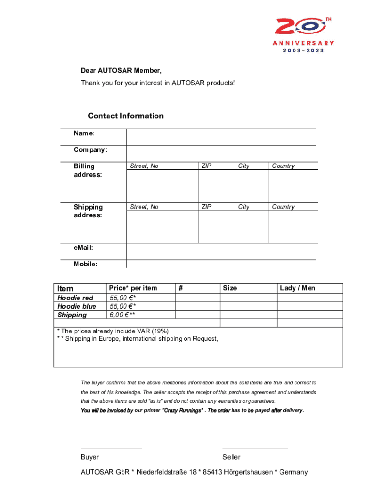 Get the free News & Events - AUTOSAR Anniversary Hoodie