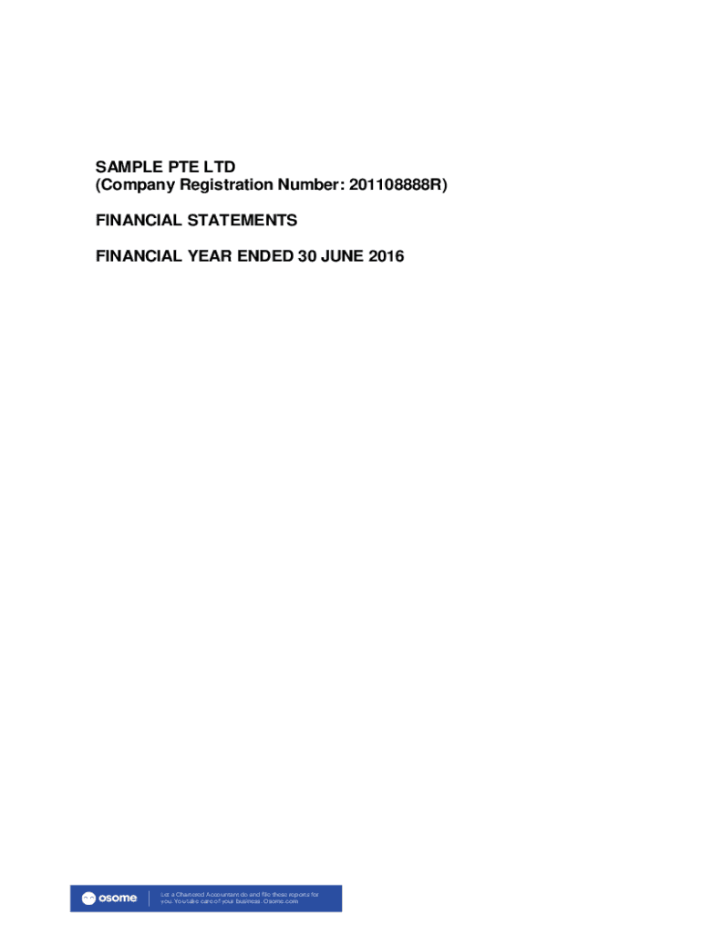 SAMPLE PTE LTD (Company Registration Number: 201108888R) FINANCIAL STATEMENTS FINANCIAL YEAR ENDED 30 JUNE 2016Let a Chartered Accountant do and file these reports for you. You take care of your business.