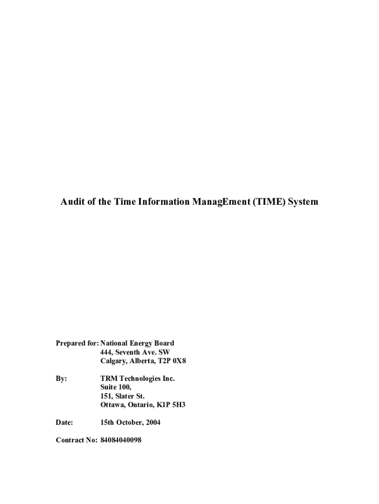 Audit of the Time Information Management (TIME) SystemPrepared for: National Energy Board