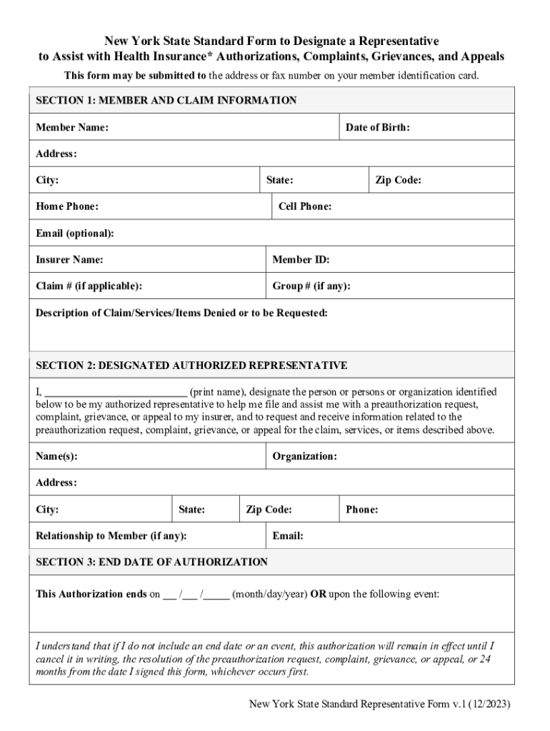 Get the free NYS Standard Form to Designate a Representative to Assist with ...