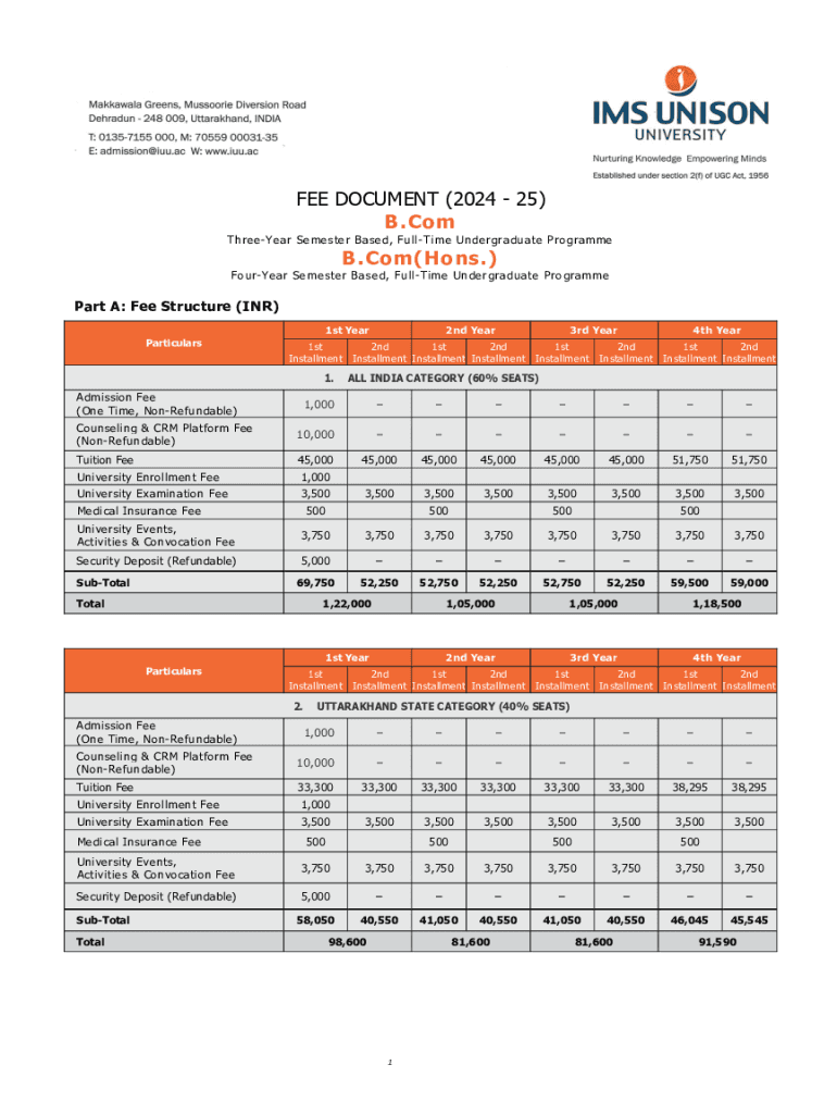 Threadier Semester Based, Halftime Undergraduate Programmed. Com(Hons.) FourYear Semester Based, Halftime Undergraduate Programmer A: Fee Structure (INR)
