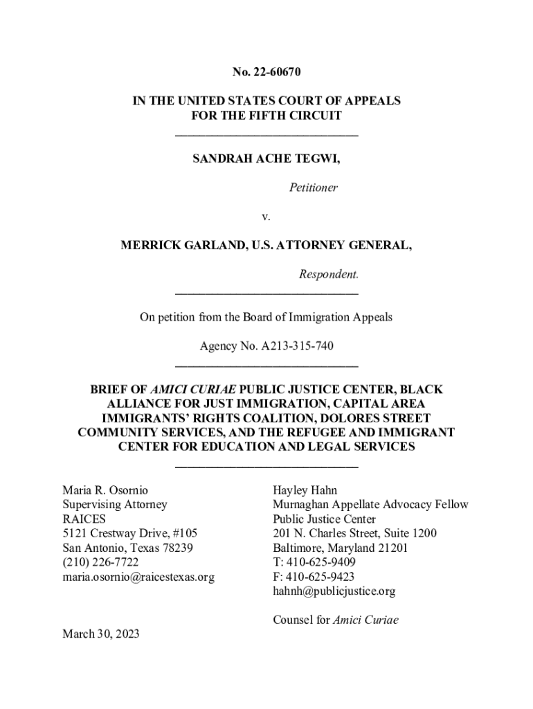 No. 2260670 IN THE UNITED STATES COURT OF APPEALS FOR THE FIFTH CIRCUIT ___ SANDRAH ACHE TEGWI, Petitioner v. MERRICK GARLAND, U.S. ATTORNEY GENERAL, Respondent. ___ On petition from the Board of