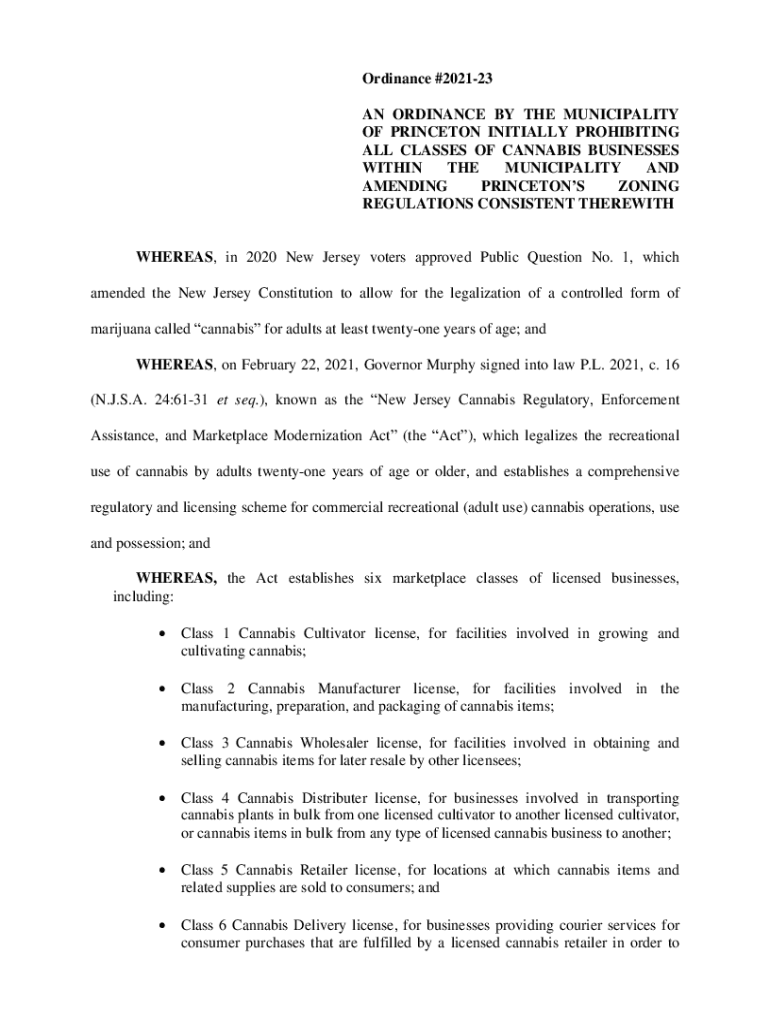 Get the free Princeton Council to discuss cannabis retail shops again ...
