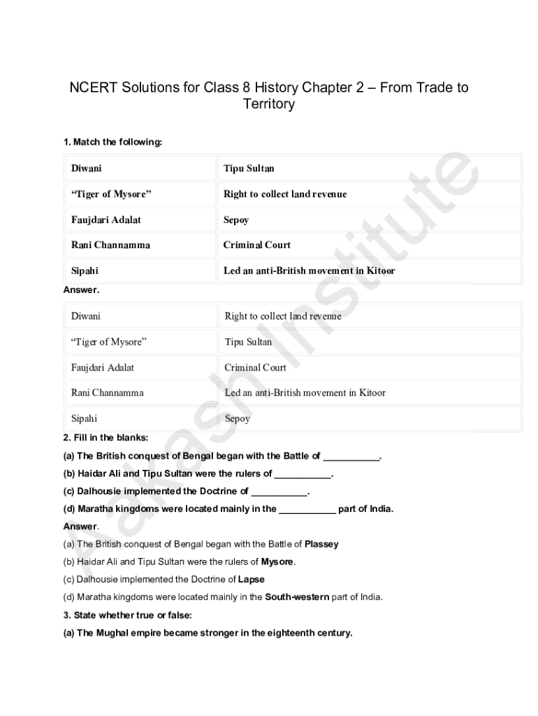 CERT Solutions for Class 8 History Chapter 2 From Trade to