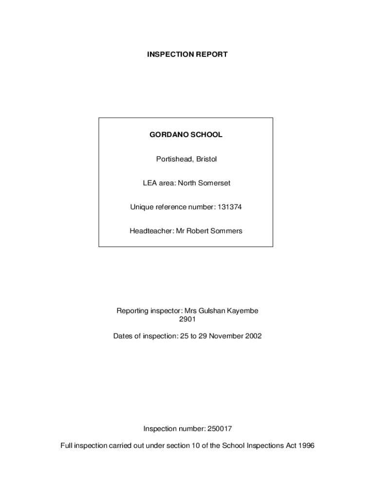 INSPECTION REPORTGORDANO SCHOOLPortishead, Bristol