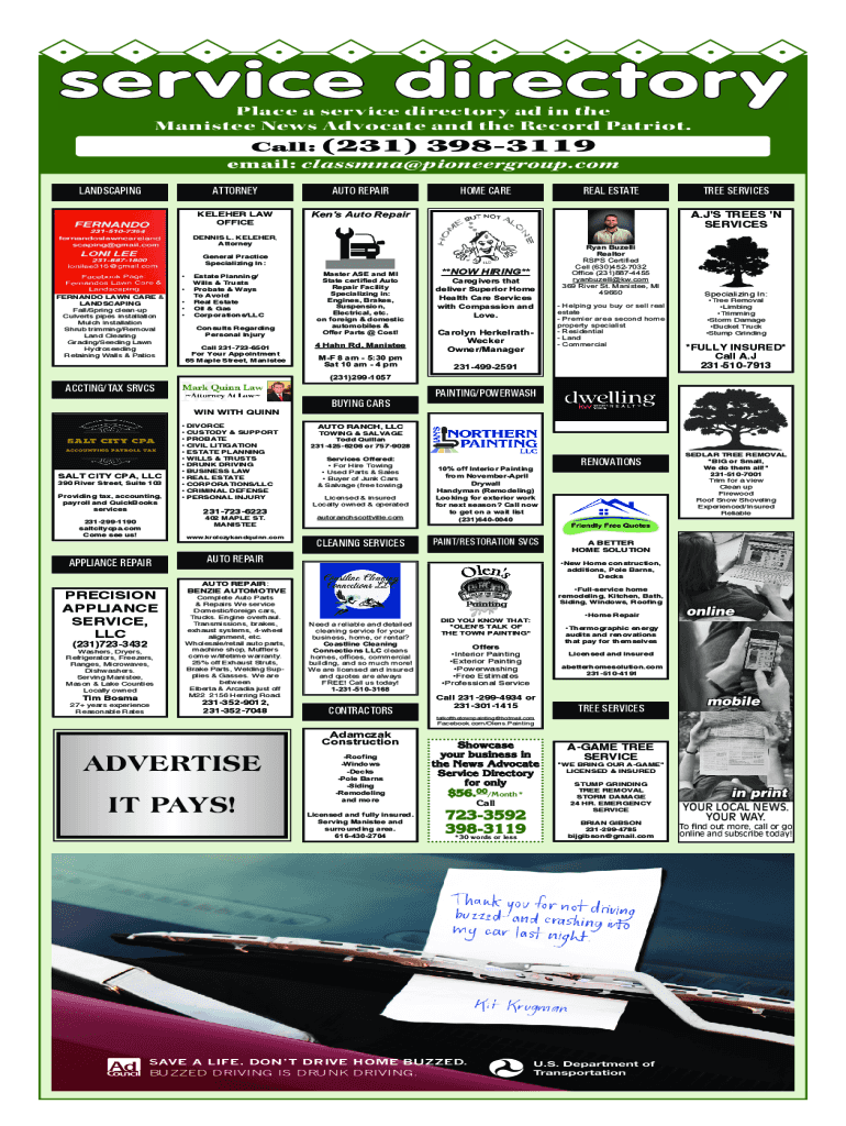Place a service directory ad in the