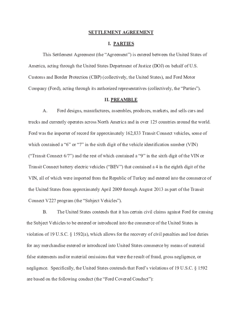 Get the free Settlement Agreement -Among The United States of ...