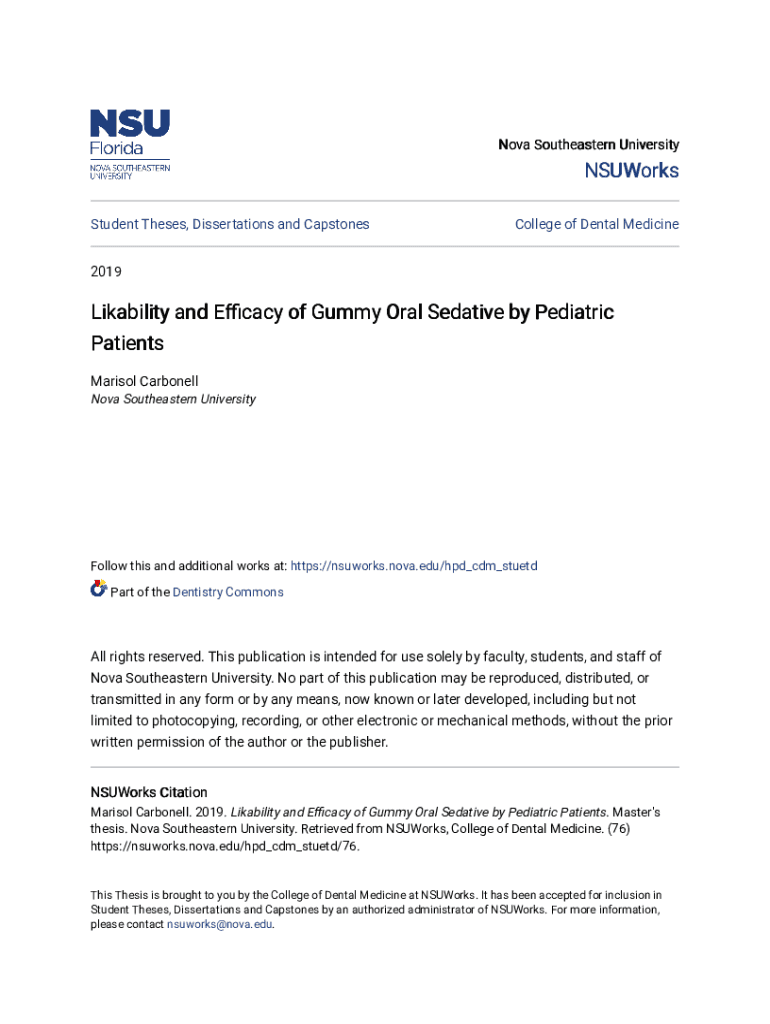 Get the free Likability and Efficacy of Gummy Oral Sedative by Pediatric Patients - nsuworks nova