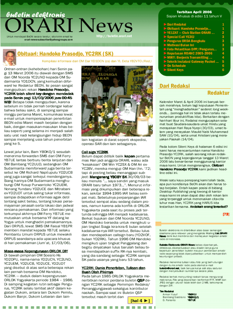 orarinewssubscribe@yahoogroups.comhttp://bulletin.rare.netObituari: Handbook Prado, YC2RK (SK)