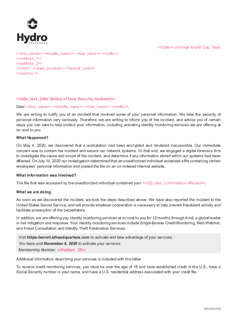 Date (Format: Month Day, Year) first_name middle_name last_name suffix address_1 address_2 city, state_province postal_code country b2b_text_2(Re: Notice of Data Security Incident) Dear first_name