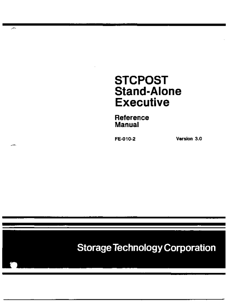 STC POST StandAlone Executive Reference ManualFE0102Version 3.0Information contained in this publication is subject to change. In the event of changes, the publication will be revised. Comments concerning