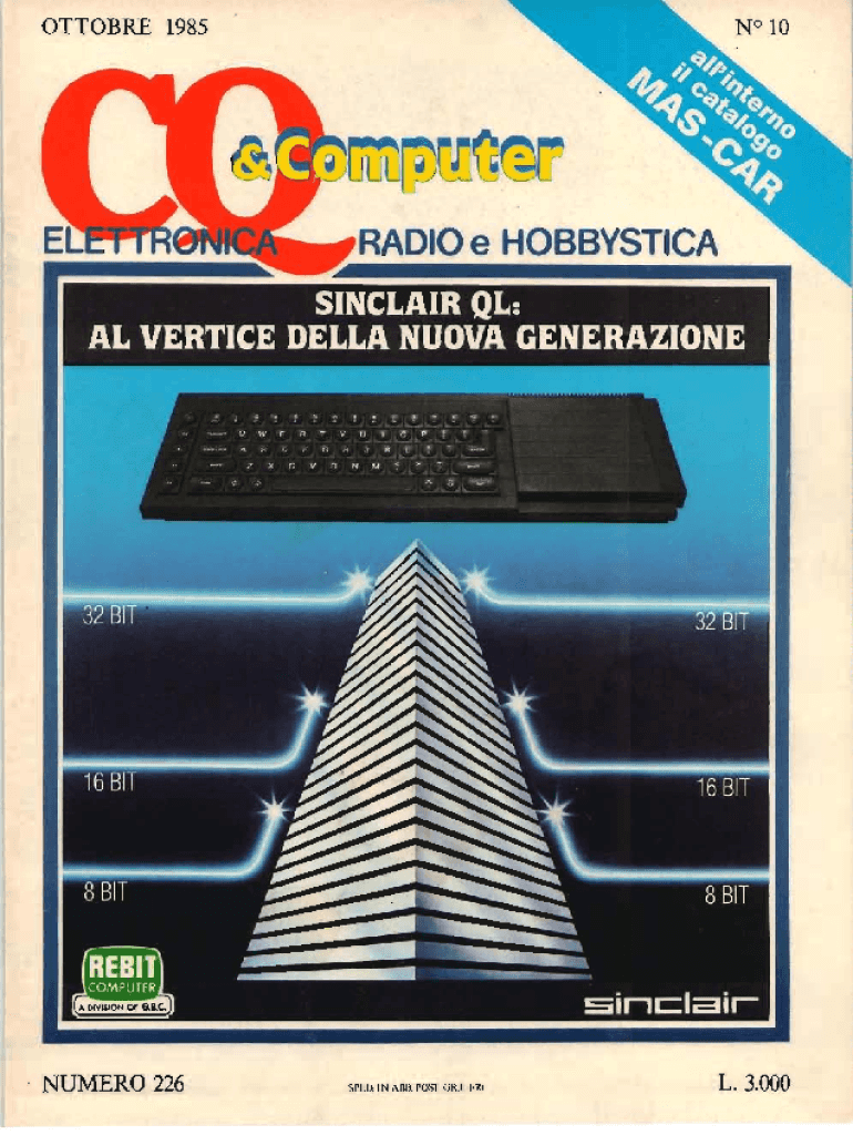 RADIO e HOBBYSTICA SINCLAIR QL:AL VERTICE DELLA NUOVA GENERAZIONE, NUMERO 226SPED. I N Allil. POST. GR.lll mL. 3.000CT EINTEflArlljAL42100 REGGIO EMILIA ITALY Via R Sevardi, 7 (Zona Ind. Mancasale)