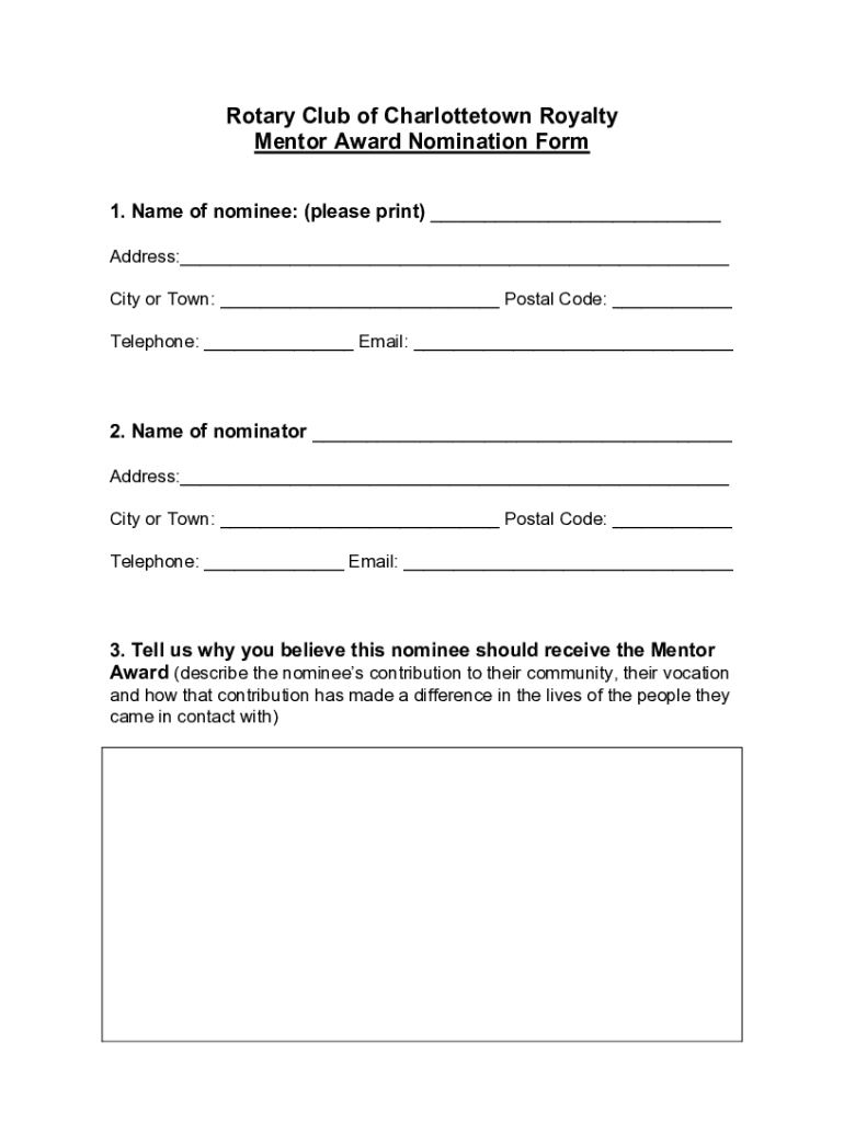 ___ Address:___ City or Town: ___ Postal Code: ___ Telephone: ___ Email: ______ Address:___ City or Town: ___ Postal Code: ___ Telephone: ___ Email: ___(describe the nominees contribution to their
