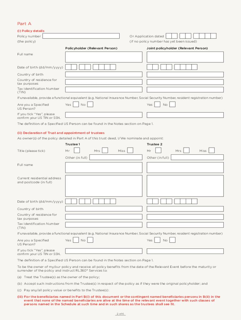 The Beneficiary Trust NominationChanging BeneficiariesThis trust deed allows owner(s) of an RL360 Services policy