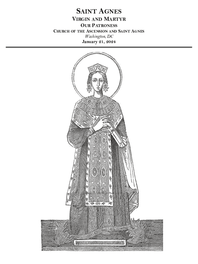 SAINT AGNES VIRGIN AND MARTYR OUR PATRONESS CHURCH OF THE ASCENSION AND SAINT AGNES Washington, DC January 21, 20241WELCOME to all of our guests and visitors. Whether you are simply passing through