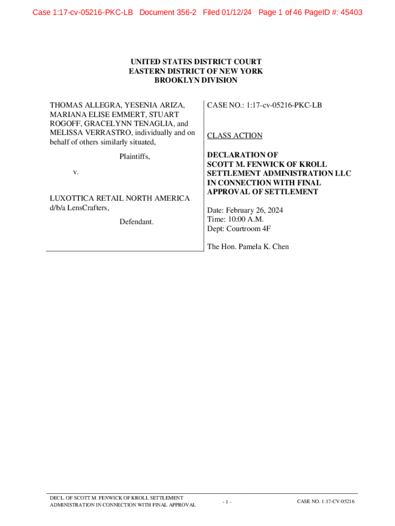 Case 1:17cv05216PKCLB Document 3562 Filed 01/12/24 Page 1 of 46 PageID #: 45403UNITED STATES DISTRICT COURT EASTERN DISTRICT OF NEW YORK BROOKLYN DIVISION THOMAS ALLEGRA, YESENIA ARIZA, MARIANA ELISE