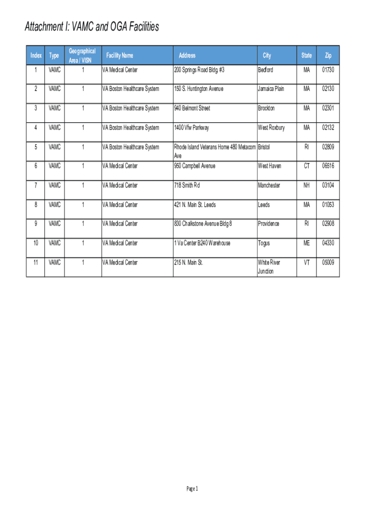12VAMC3Facility NameAddressCityStateZipVA Medical Center200 Springs Road Bldg. #3BedfordMA017301VA Boston Healthcare System150