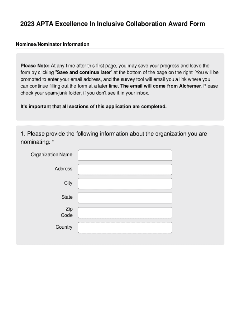 How to fill out apta excellence in inclusive?