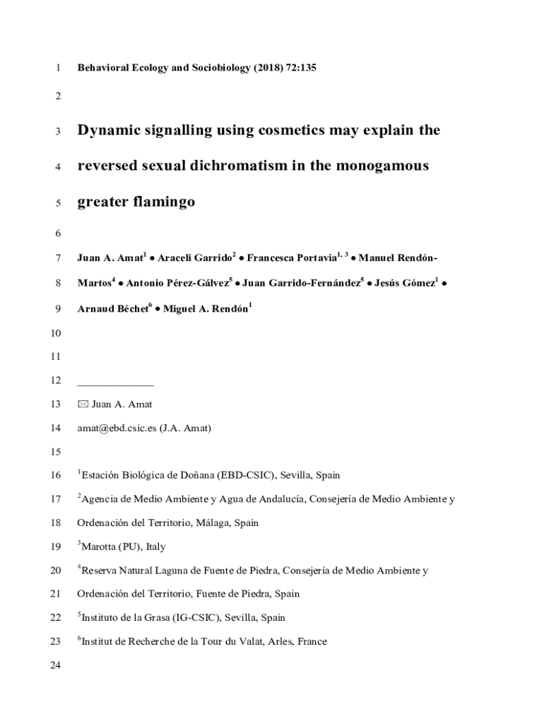 3Dynamic signalling using cosmetics may explain the4reversed sexual dichromates in the monogamous5greater flamingo6
