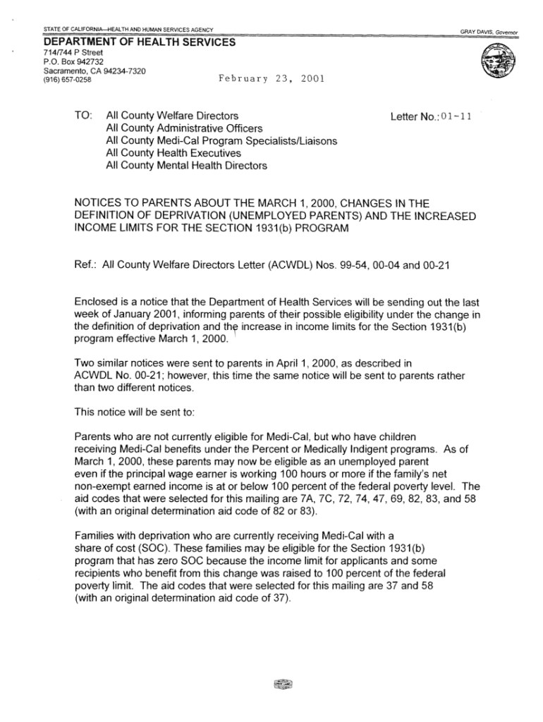 STATE OF CALIFORNIAHEALTH AND HUMAN SERVICES AGENCYGRAY DAVIS, GovernorDEPARTMENT OF HEALTH SERVICES