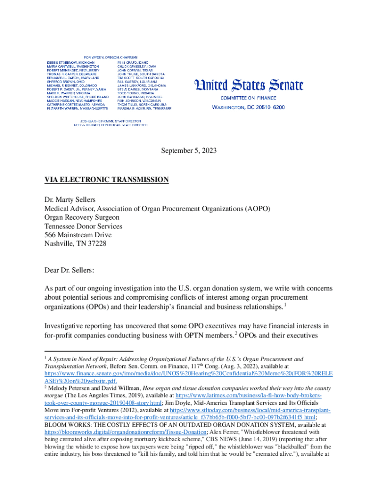 Get the free Wyden Grassley Cardin Young to Marty Sellers - OPO Conflict of Interest