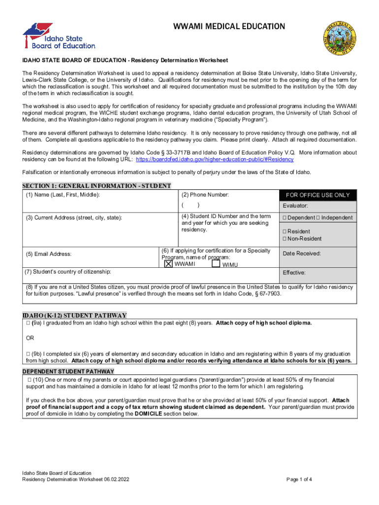 IDAHO RESIDENCY DETERMINATION WORKSHEET INSTRUCTIONS for COMPLETION & DOCUMENTATION (please use these instructions in lieu of worksheet documentation notations) Before starting, be sure to know which