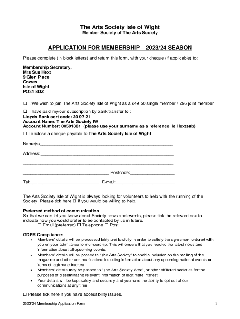 Member Society of The Arts SocietyAPPLICATION FOR MEMBERSHIP 2023/24 SEASON