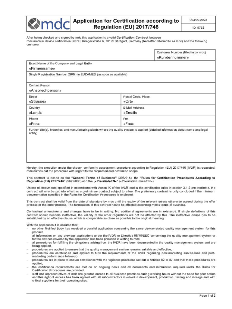 Get the free Application for Certification according to Regulation (EU) ...