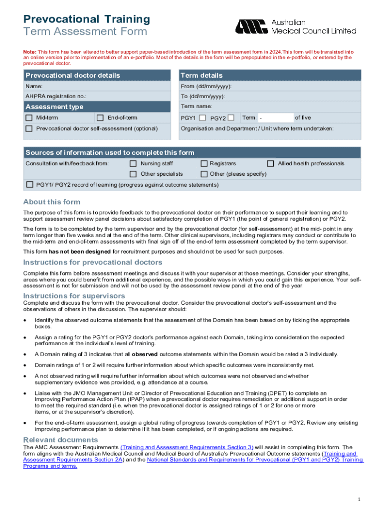 Prevocational Training Term Assessment Form Note: This form has been altered to better support paperbased introduction of the term assessment form in 2024.This form will be translated into an online