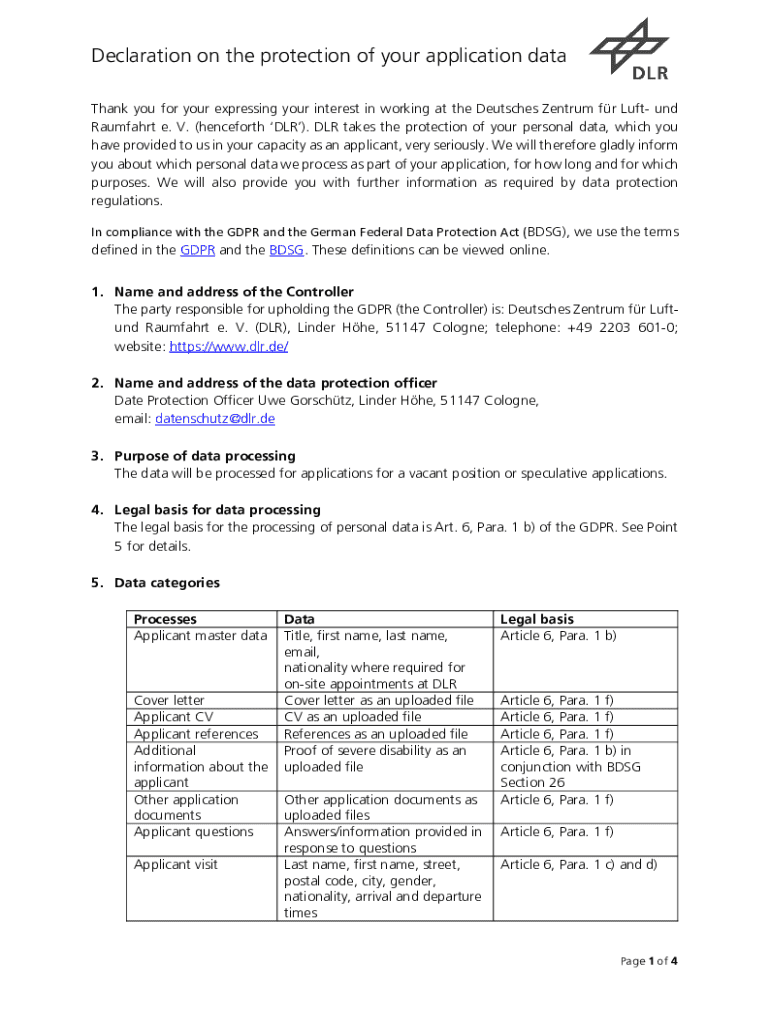 Declaration on the protection of your application data